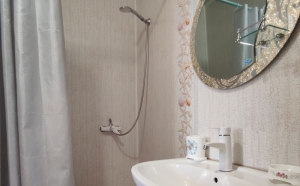 «Русский дом» . Деревянный двух этажный коттедж из живого сруба: Четыре отдельных 3-х местных номера. В номерах : 2 кровати, кресло-кровать, прикроватные тумбочки, стол, стулья, шкаф, телевизор, холодильник, электрочайник, кондиционер. Санузел – туалет, умывальник, душевая кабина.